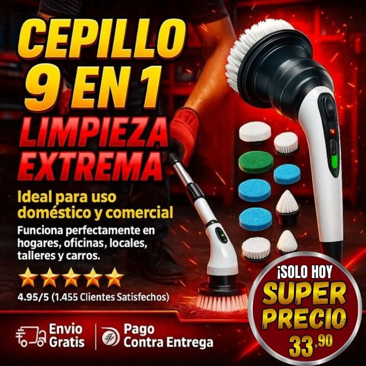 ¡Super Promo! Cepillo de Limpieza Eléctrico Recargable 9 en 1 + Envío Gratis 🎁
